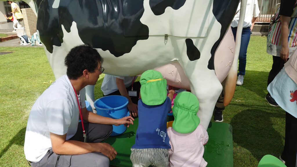 興味津々に話を聞いたり、一生懸命に搾乳体験をする姿がとても可愛いらしかったです。