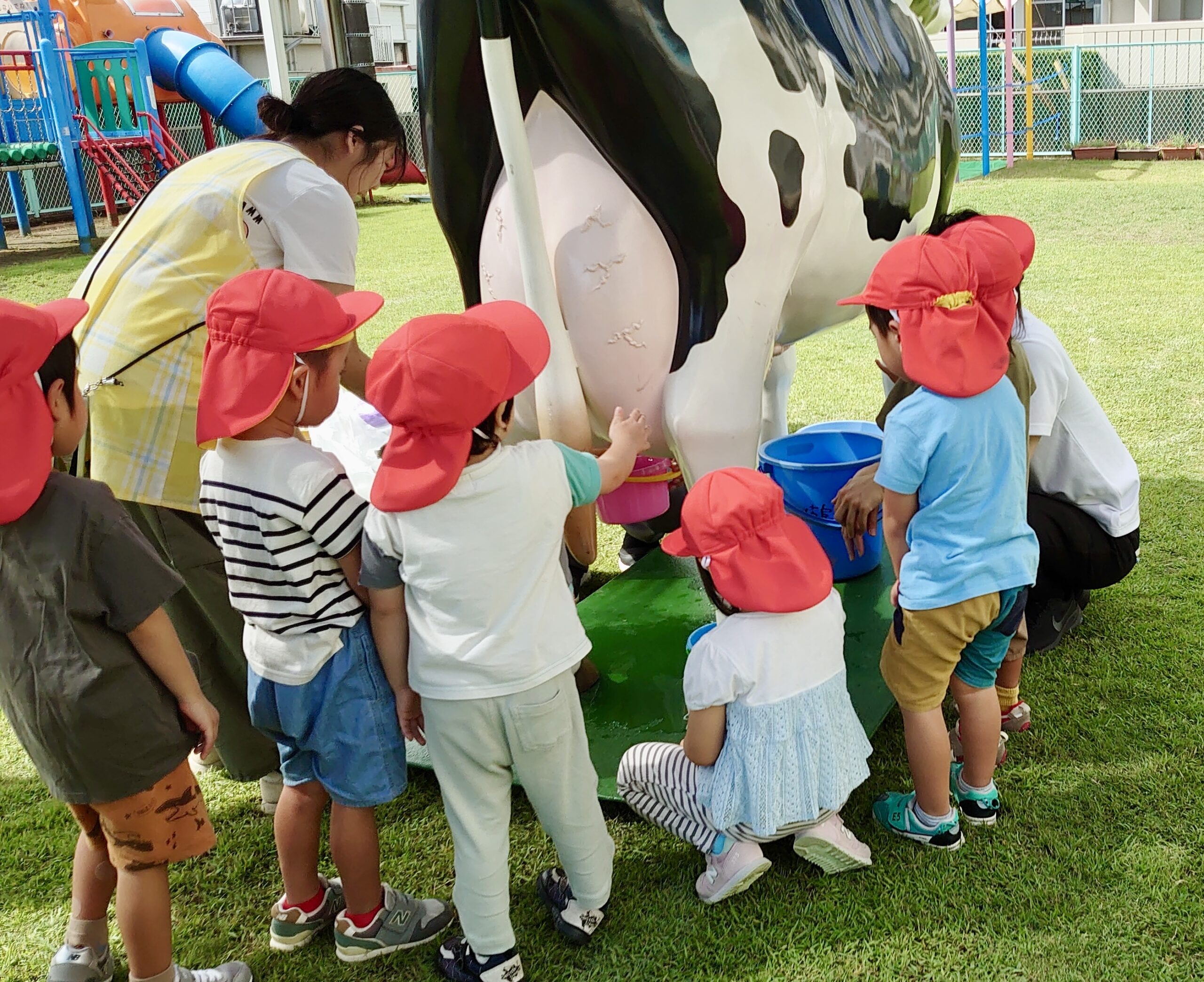 かがしまこども園にて、0歳~5歳児の園児を対象にモーモースクールを行いました。